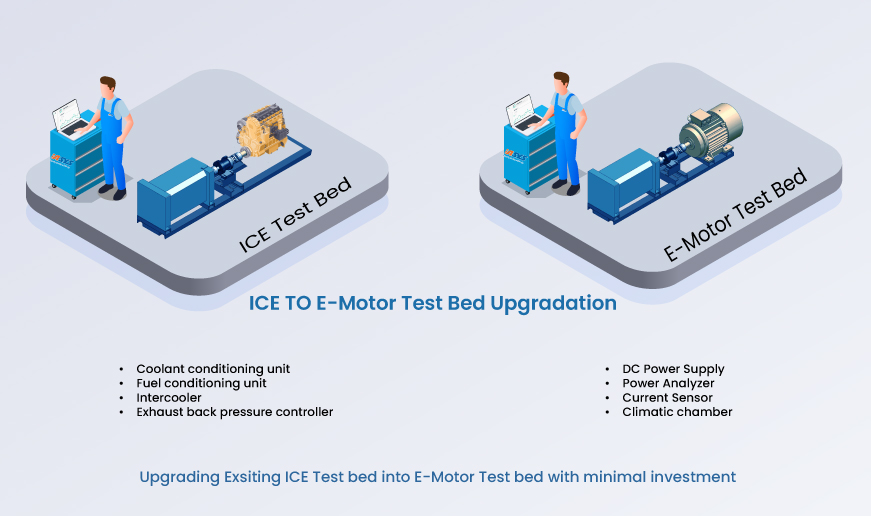 - By upgrading the Engine (ICE) test bench to an Electric Vehicle (EV) Motor test bed, companies can ensure that their EV motor test bed is capable of accurately and effectively testing the performance of electric motors.